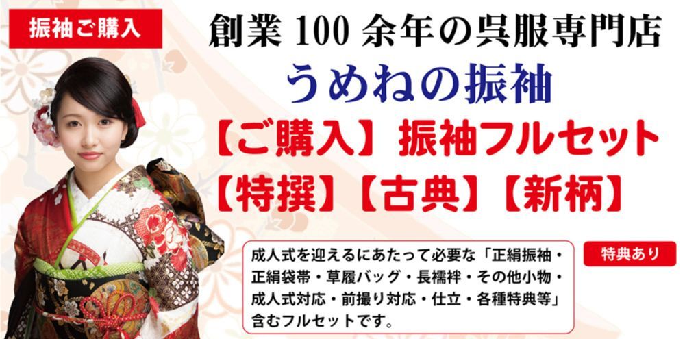 \ うめね呉服店の振袖ご購入プランの内容をご紹介 /
