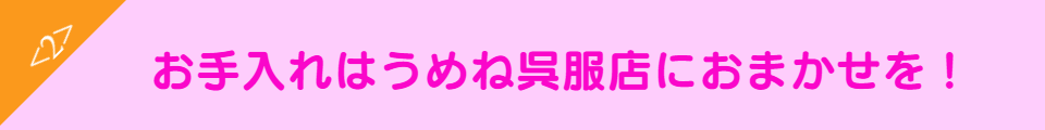 お手入れは、早いほど良い状態が保てます。お嬢様の成人の年に関わらず、一度うめね呉服店へお持ちください。お手入れ全般のご相談を承ります