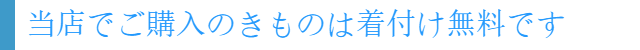 当店でお買い上げいただいた「きもの」のご本人様ご着用の場合は、営業時間内お着付無料です。