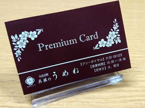 うめね呉服店にて、【正絹表地】をお買上の方のみ発行のプレミアムカード。