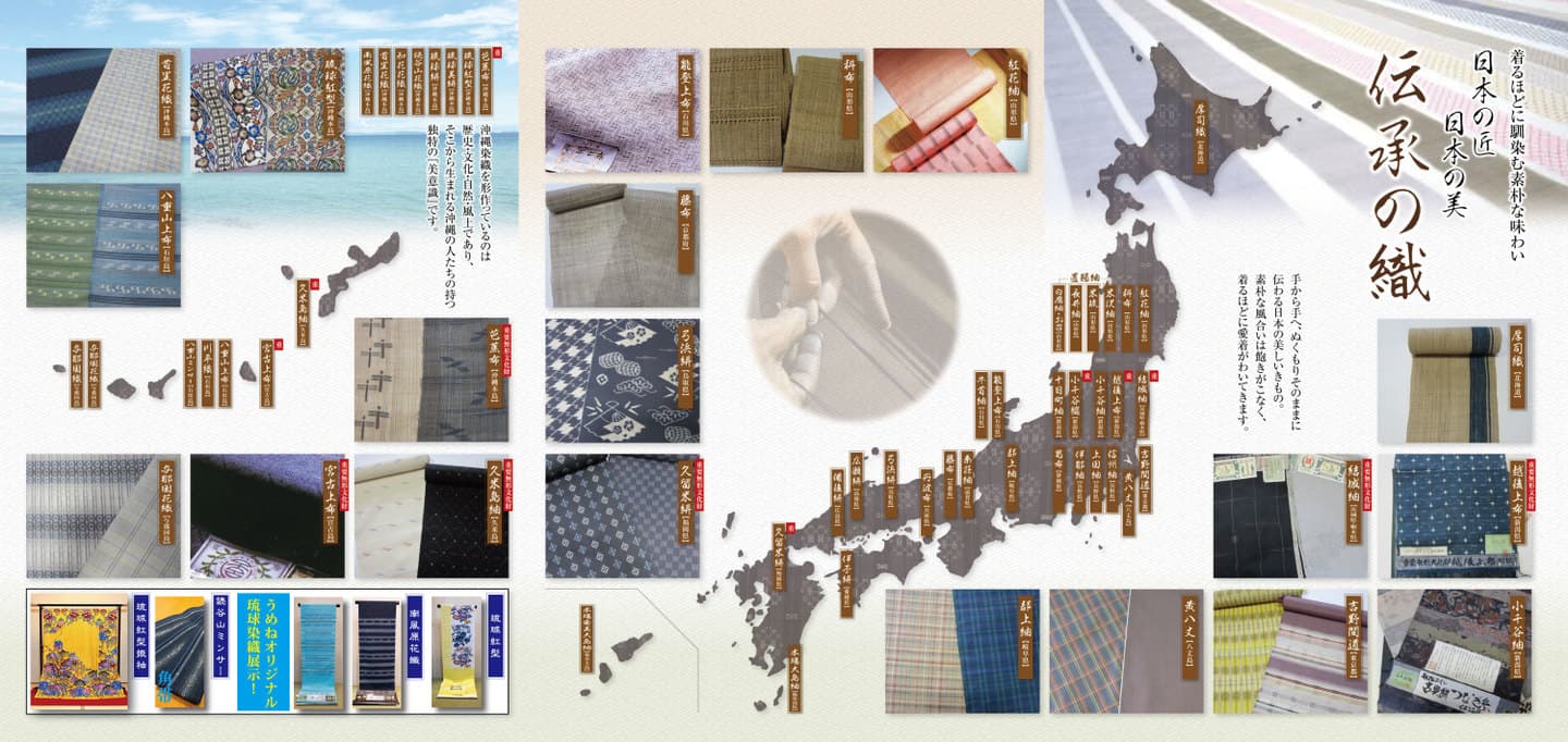 【襟の衿秀】の帯締め・帯揚げ・草履・ショールやバッグも展示