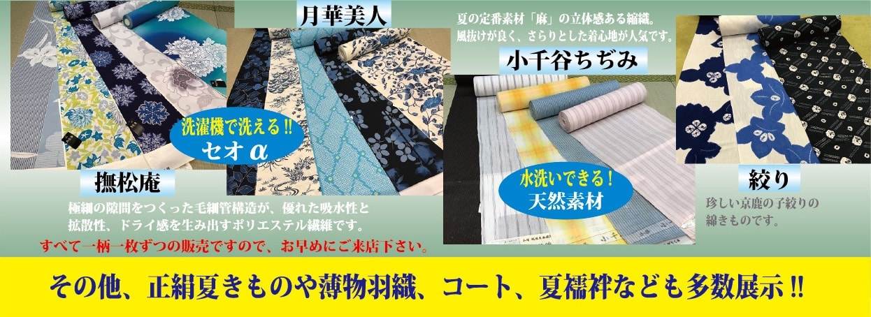 そんな夏のゆかたの反物や、麻の反物を多数入荷。