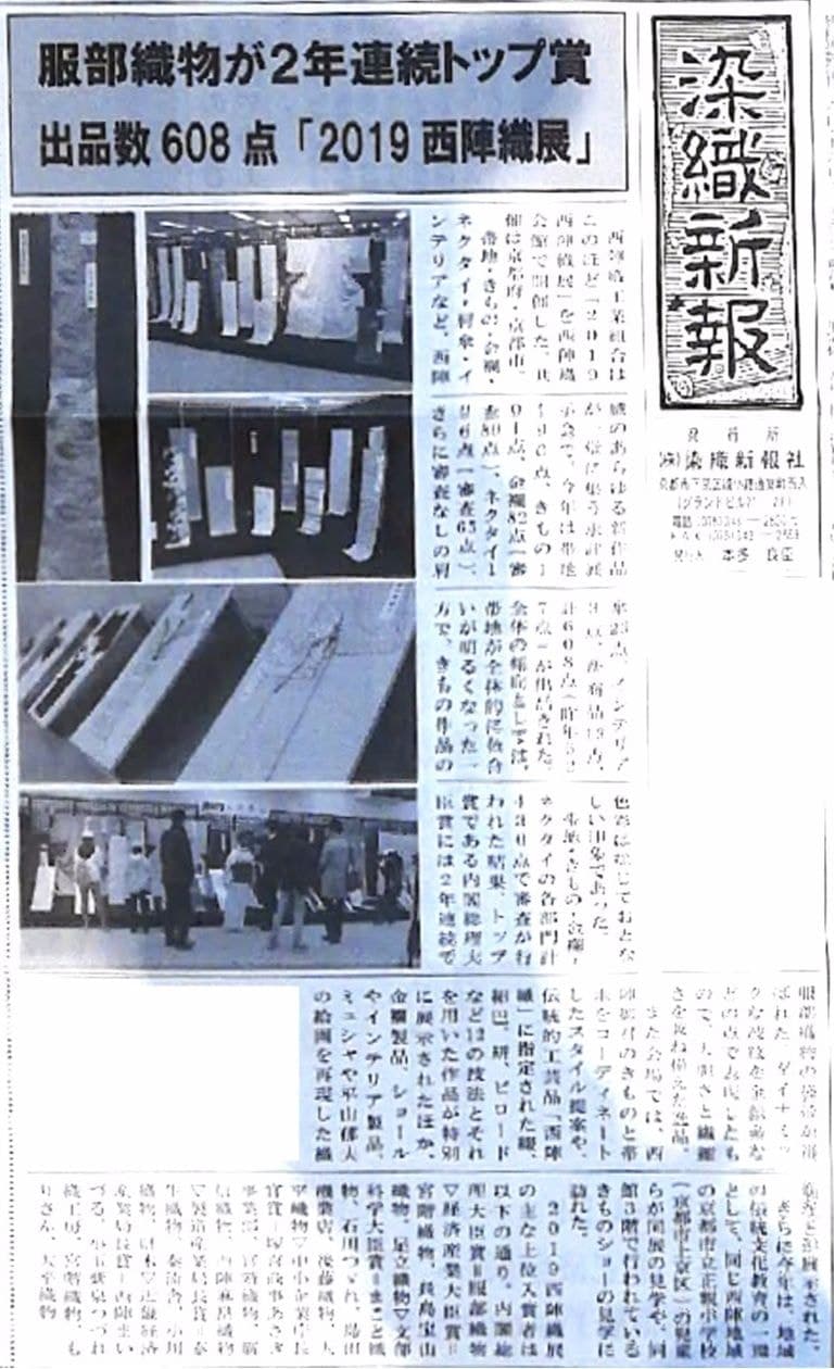 服部織物が「2019西陣織展」2年連続トップ賞受賞!