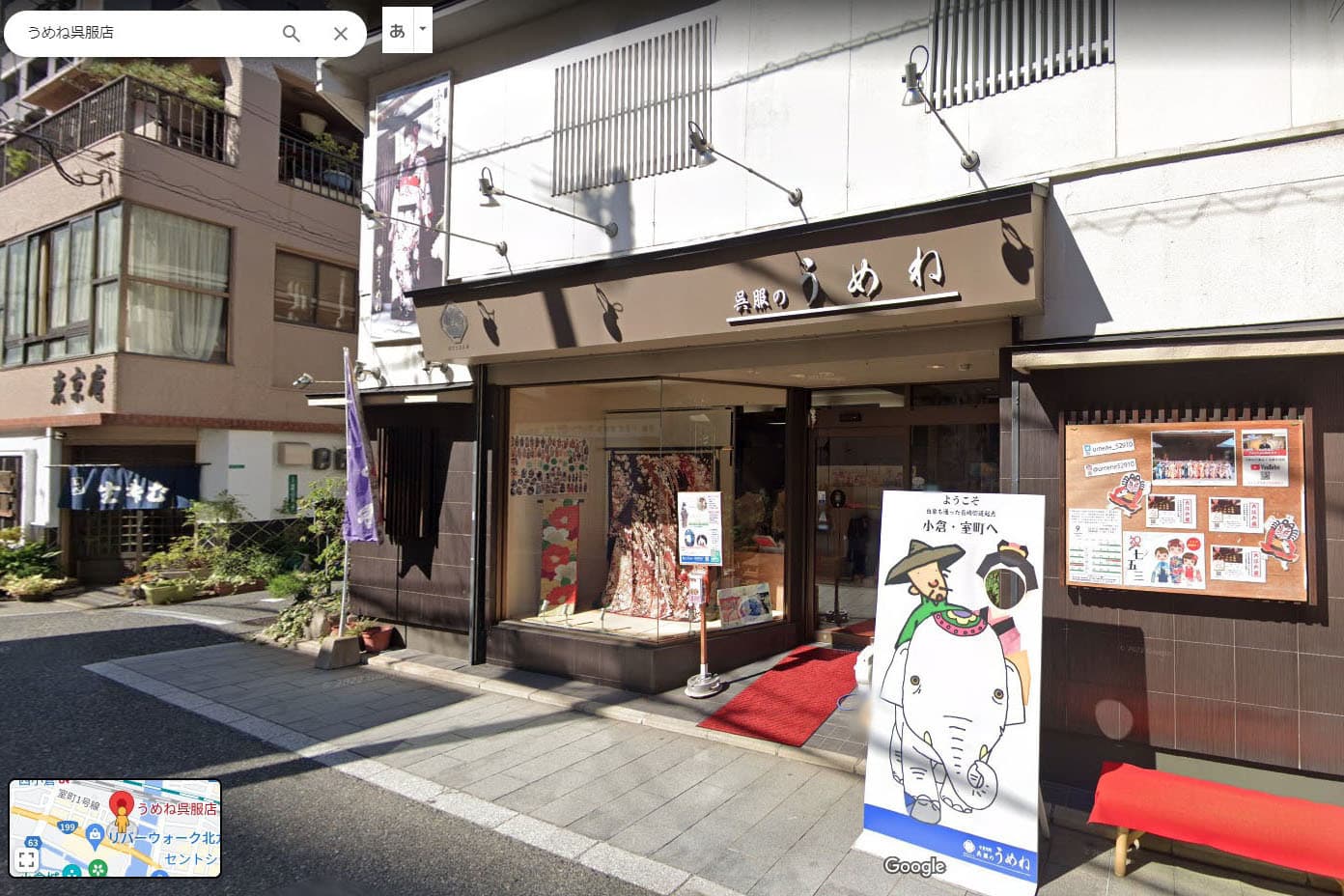 【うめね呉服店の目印・外観】