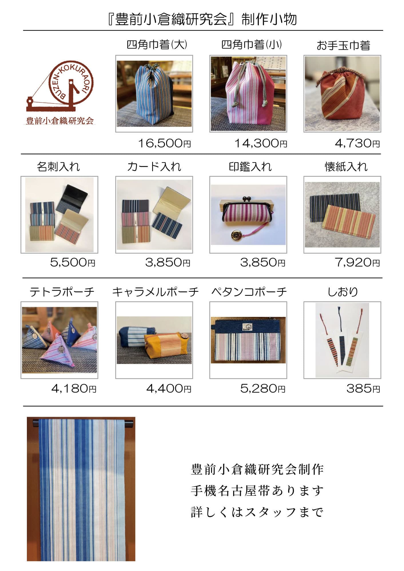 ※小倉織小物の掲載商品が売切れの際は、ご了承ください。