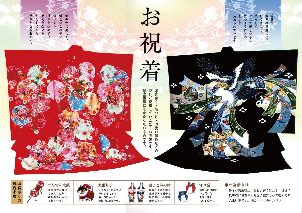 うめね呉服店では、その儀式の衣裳のお手伝いさせていただいております。お気軽にご相談くださいませ。